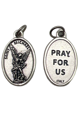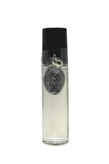 The devotional oil comes in a glass bottle with a removable roll-on top. It includes a 3/4” oval oxidized medal (made in Italy) with "Pray for Us" on the back.