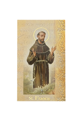 Our St. Francis biography card includes two pages made up of the biography, name meaning, saint's attributes, feast day, and a special prayer.