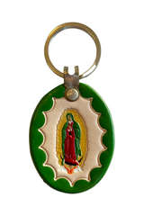 Our Lady of Guadalupe Leather Key Ring - Green