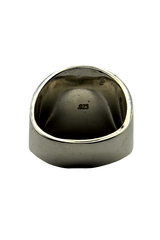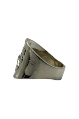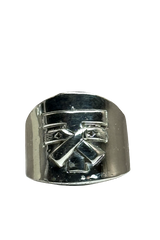 This beautiful ring is handmade and features a dimensional image of the Franciscan Coat of Arms.